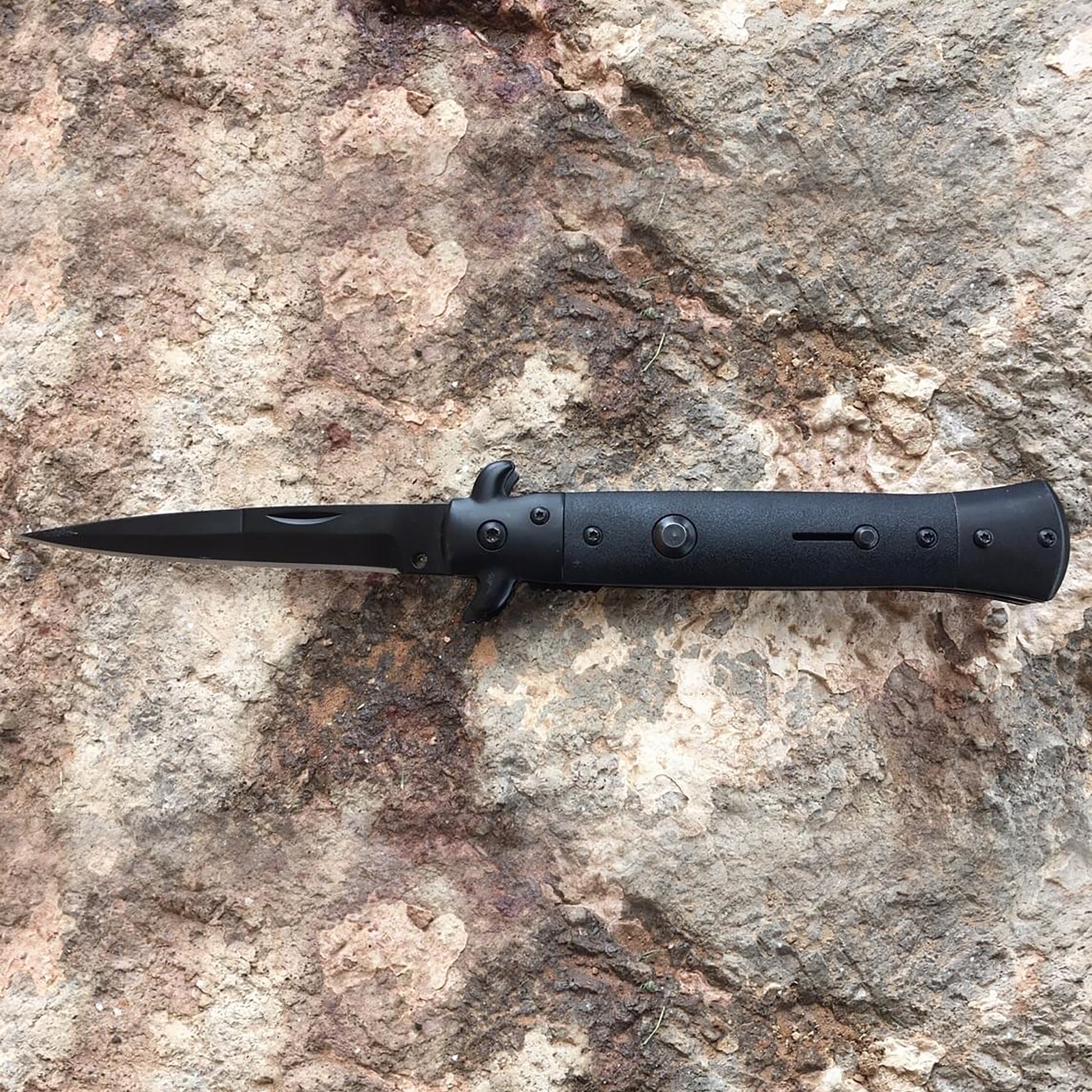 Plus, this folding stiletto knife opens as fast as a switchblade, but is legal almost everywhere thanks to the smooth design of its unique finger-post and spring deployment mechanism. Just watch this: