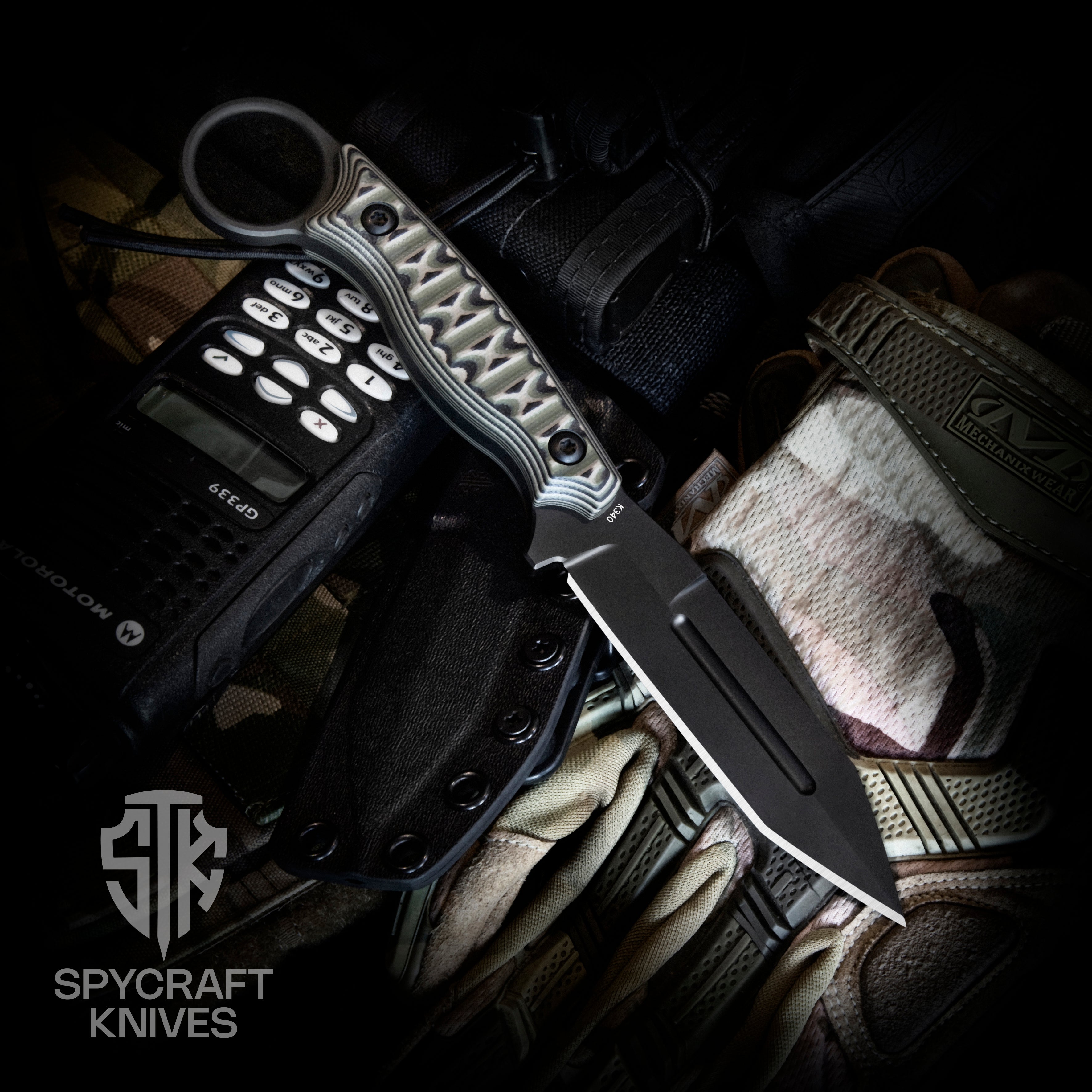 Gladius with Multi-Cam Handle is a fixed blade built for balance and power. Forged from K340 steel at 59–60 HRC, it features a polished plain edge, a durable PVD finish, and a spear point style for precision and strength.