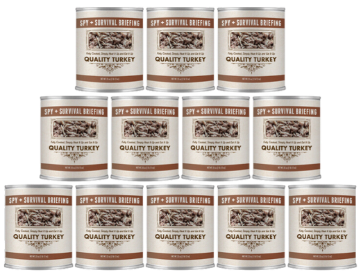These premium reserves are 100% real American turkey, carefully packed in 12 heavy-duty cans using our proprietary preservation process that locks in that fresh-from-the-farm taste you remember from better days.