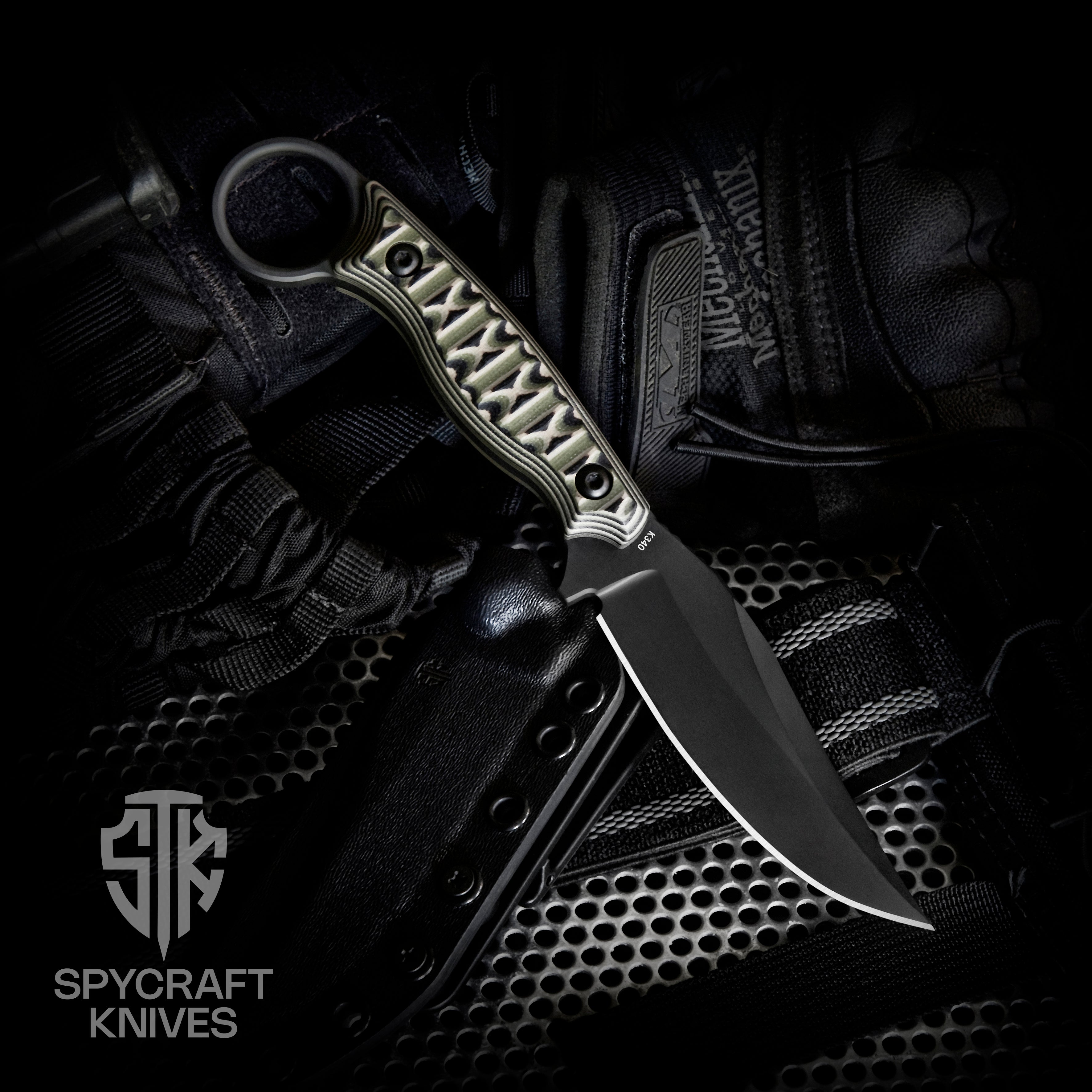 The Recon with multi-cam handle is a fixed blade designed for versatility and strength. Made from K340 steel hardened to 59–60 HRC, it features a polished plain edge, a protective PVD finish, and a clip point style for precision and durability.